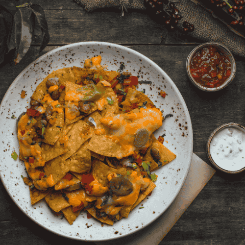Royal Poppadom is a crispy poppadom topped with spiced onions, tomatoes, and herbs.
