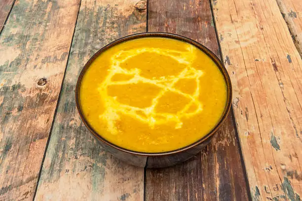 Medium hot cooked with various herbs and spices garnished with a layers of onion, tomatoes and peppers.